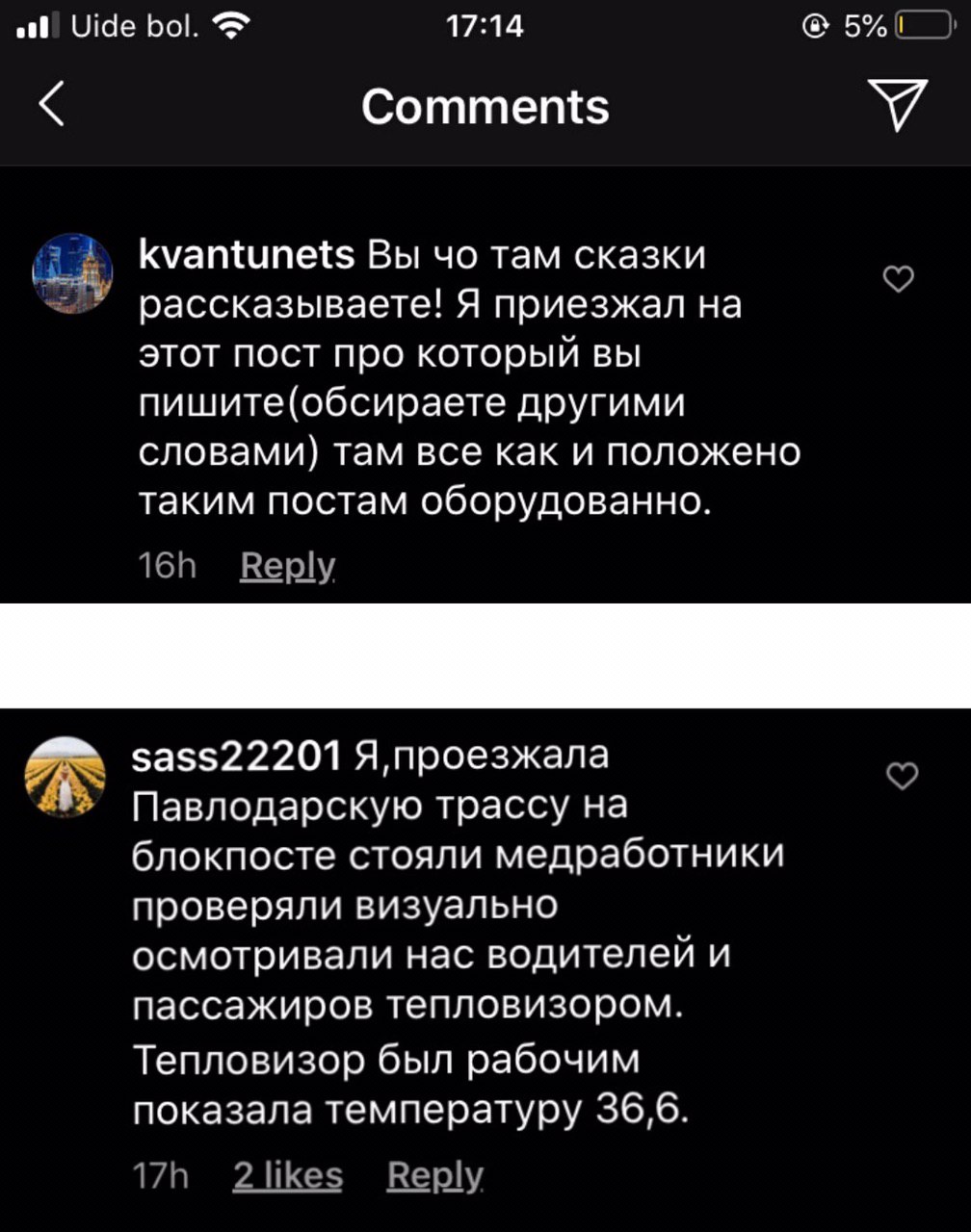 Одновременно под постом с рассказом медсестры в инстаграме «Медиазоны» появились комментарии других медсестер и людей, «проезжавших блокпост Караганда-Павлодар».